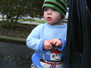 Er han ikke fin i Elias genseren?? August brukte denne rundt den tiden Aspen ble født. Trist at de vokser så fort. For dere som begynner å bli lei å se han i den grønne og stripete lua men ører på kan jeg fortelle at det er den eneste lua han vil ha på seg. Jeg prøvde å forandre det litt her om dagen siden jeg fikk en ny lue, men han er lite villig til forandring på den fronten. Han grein og sutret og dro av seg lua.